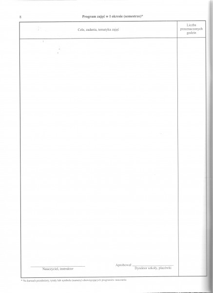 Dziennik zajęć pozalekcyjnych, pozaszkolnych, kursów praktycznych i zawodowych, MEN-I/6. Oprawa broszurowa, 32 strony, format A4, okładka zaopatrzona w tzw. skrzydełko na listę 50 uczestników