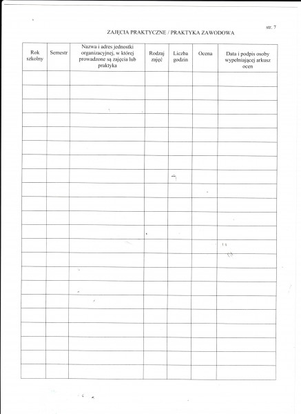 MEiN I/42/2 Arkusz ocen dla słuchaczy szkoły policealnej